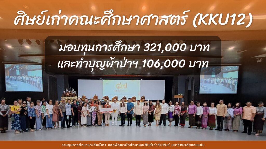 13 กันยายน 2568 ในโอกาสวันคล้ายวันสถาปนาคณะศึกษาศาสตร์ มหาวิทยาลัยขอนแก่น ศิษย์เก่าคณะศึกษาศาสตร์ สาขาการมัธยมศึกษา รุ่น 7 (KKU12) กว่า 26 คน ได้รวมตัวกันเพื่อรำลึกถึงมิตรภาพครบ 50 ปี พร้อมแสดงพลังแห่งการให้ที่งดงาม