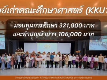 ศิษย์เก่าคณะศึกษาศาสตร์ สาขาการมัธยมศึกษา รุ่น 7 (KKU12) มอบทุนการศึกษา 321,000 บาท และ ร่วมทำบุญผ้าป่าสร้างอาคารโรงพยาบาลชนบท จ.ขอนแก่น จำนวน 106,000 บาท