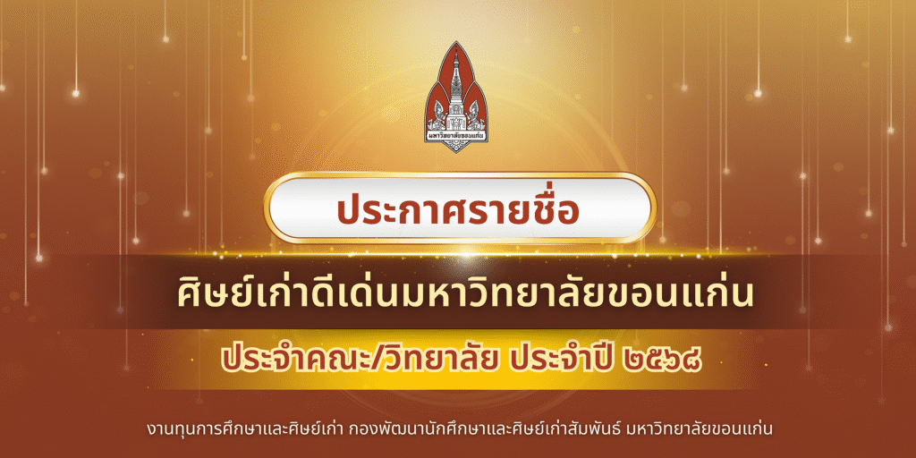 ประกาศรายชื่อศิษย์เก่าดีเด่นมหาวิทยาลัยขอนแก่น ประจำคณะ / วิทยาลัย ประจำปี 2568 จำนวน 24 ท่าน