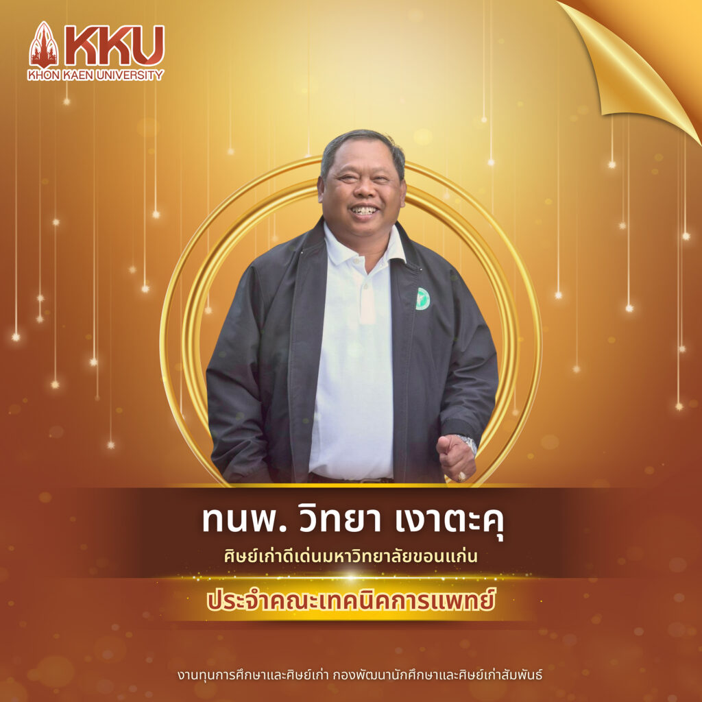 ขอแสดงความยินดีอย่างยิ่งกับศิษย์เก่าผู้ทรงเกียรติทุกท่าน ที่ได้รับการคัดเลือกให้เป็น “ศิษย์เก่าดีเด่น มหาวิทยาลัยขอนแก่น ประจำคณะ/วิทยาลัย ประจำปี 2568” เพื่อเชิดชูเกียรติในประวัติและผลงานอันเป็นที่ประจักษ์ในการสร้างคุณประโยชน์แก่สังคมส่วนรวม